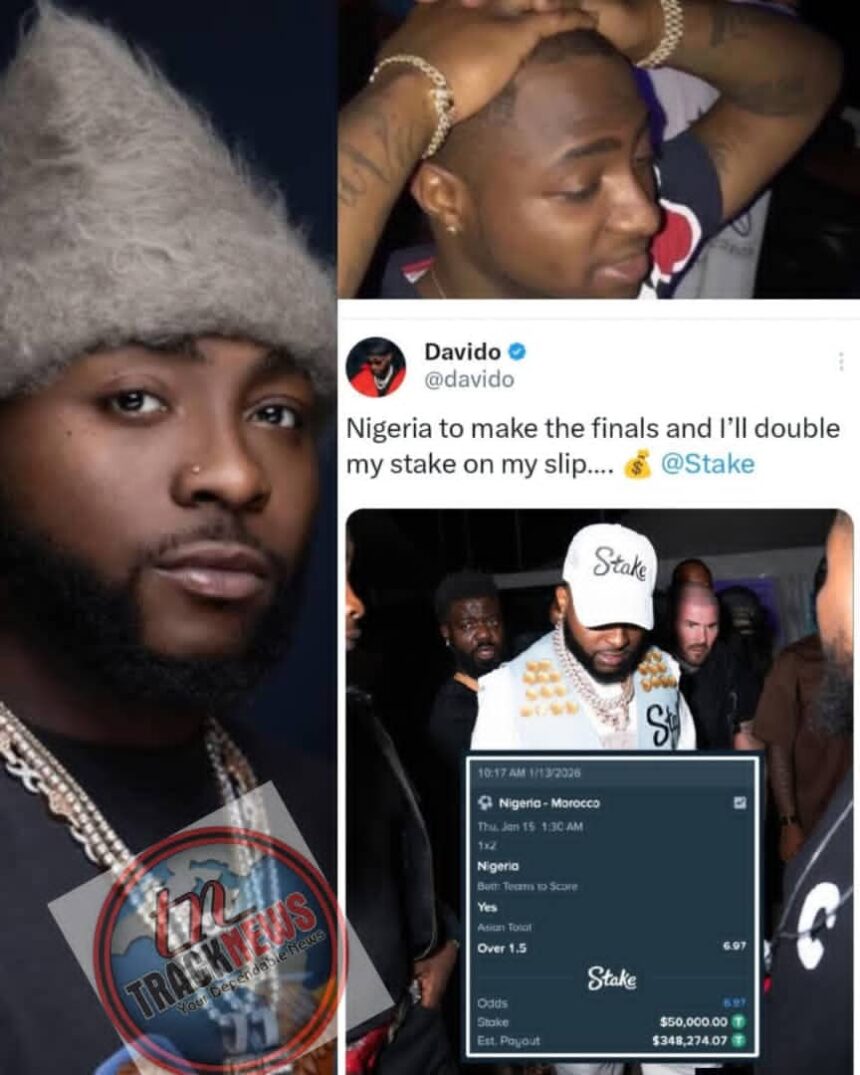 Nigerian music star Davido reportedly lost $50,000, estimated at up to ₦72 million, after staking on the Nigeria versus Morocco football match. The loss followed Nigeria’s defeat to Morocco, which ended the singer’s wager unsuccessfully.