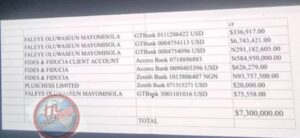 Faleye Oluwaseun Mayomisola – GTBank USD Account 0004754113: $6,743,421.00