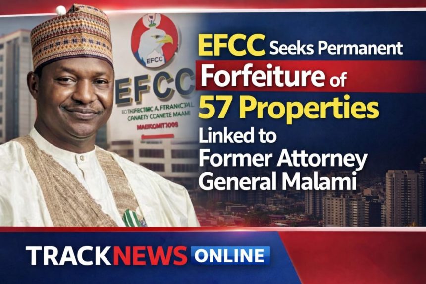The Economic and Financial Crimes Commission (EFCC) has asked the Federal High Court in Abuja to order the permanent forfeiture of 57 properties allegedly connected to former Minister of Justice and Attorney General of the Federation, Abubakar Malami.