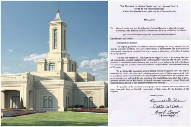 TRACKING____The Church of Jesus Christ of Latter-day Saints often informally known as the Mormon Church, has reportedly directed that members be refunded of their three years of tithe.