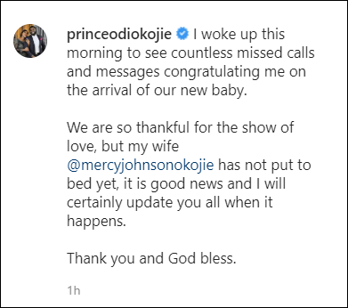 Meanwhile,Nigerian celebrities are making posts congratulating Mercy on Instagram…