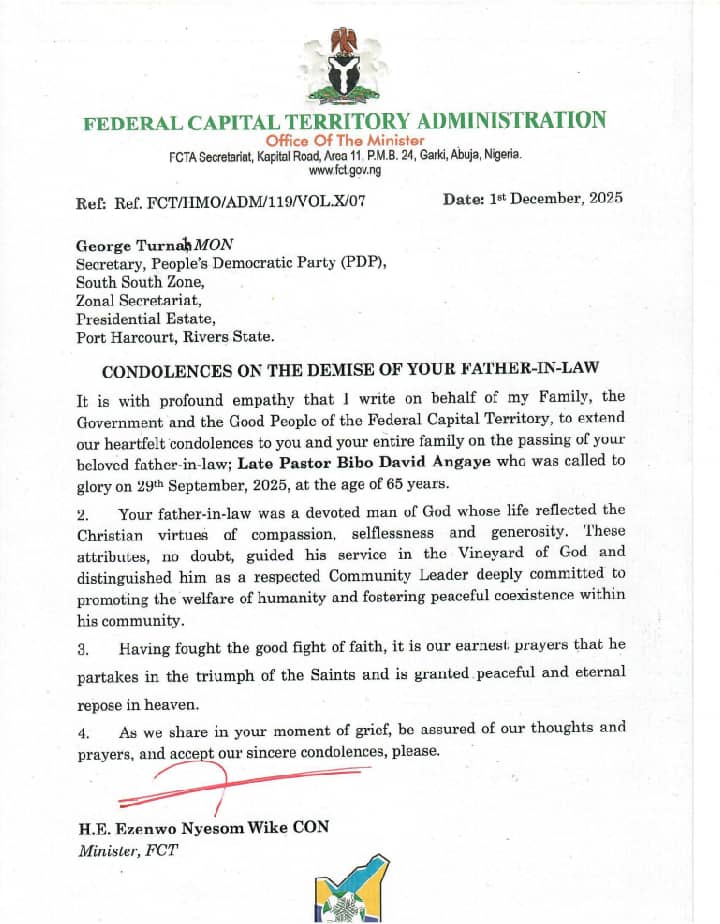 In a touching condolence message, the Honourable Minister of the Federal Capital Territory, H.E. Nyesom Ezenwo Wike, CON, described Pastor Angaye as “a devoted man of God whose life reflected compassion, selflessness, generosity, and a deep commitment to the service of humanity.” He prayed for God to grant the departed eternal rest and the family the strength to bear the loss.