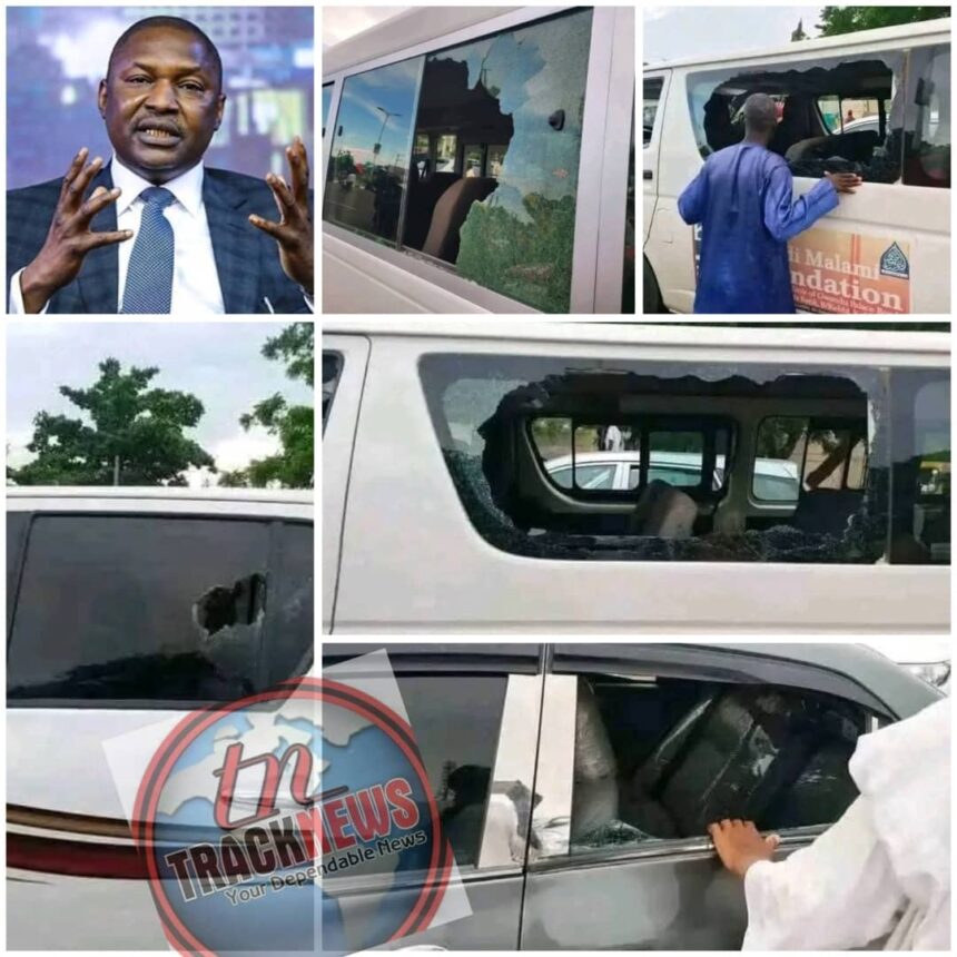 The former Minister of Justice and leader of the coalition party ADC, Abubakar Malami, along with his entourage, narrowly escaped death after being attacked by hoodlums who pelted them with stones while returning from a condolence visit in Kebbi city.