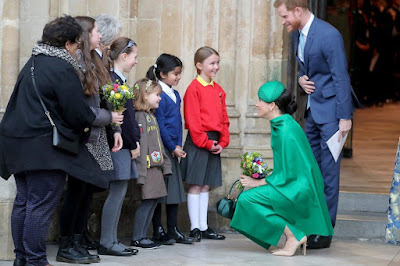 Prince Harry and Meghan joined the Queen and other senior royals at the Commonwealth Day service at Westminster Abbey on Monday afternoon.